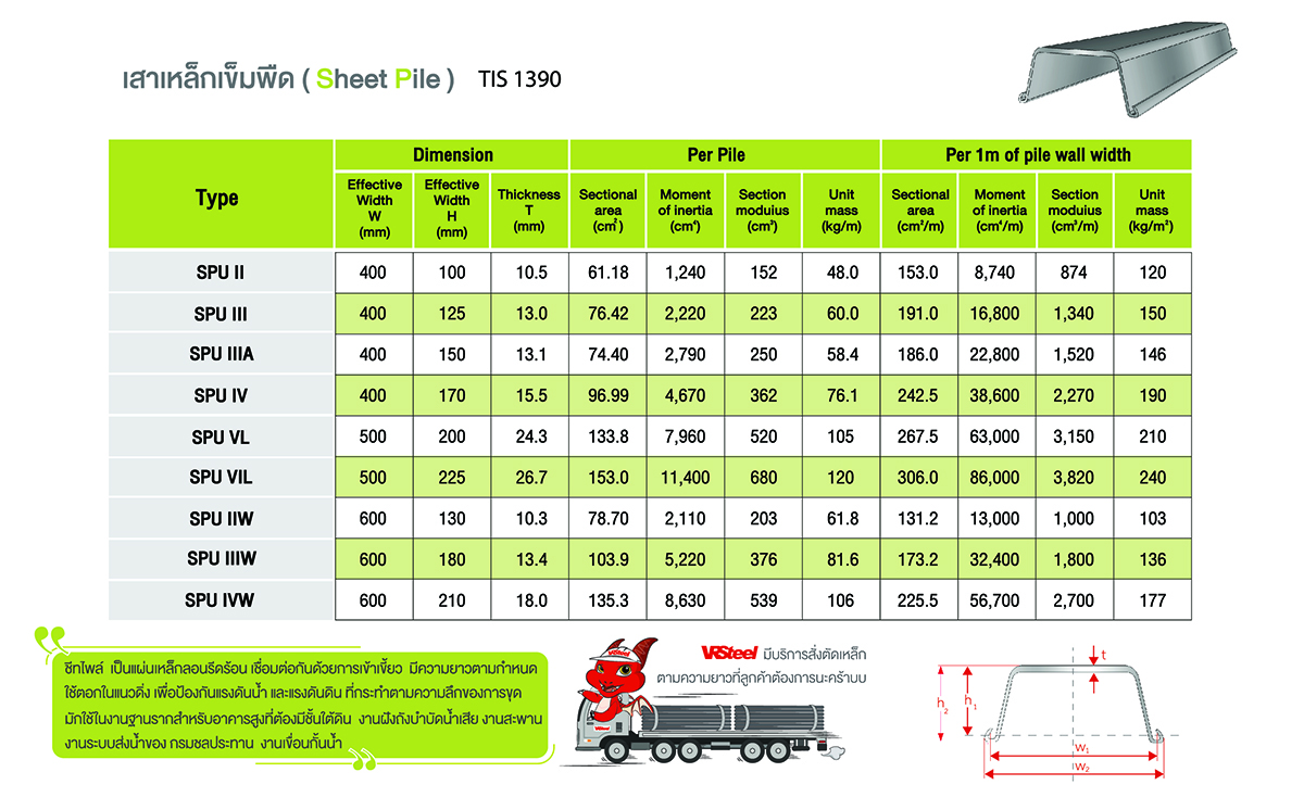 1. Sheet Pile Type 3 : ขนาด 400 x 125 x 13 mm. (lll)