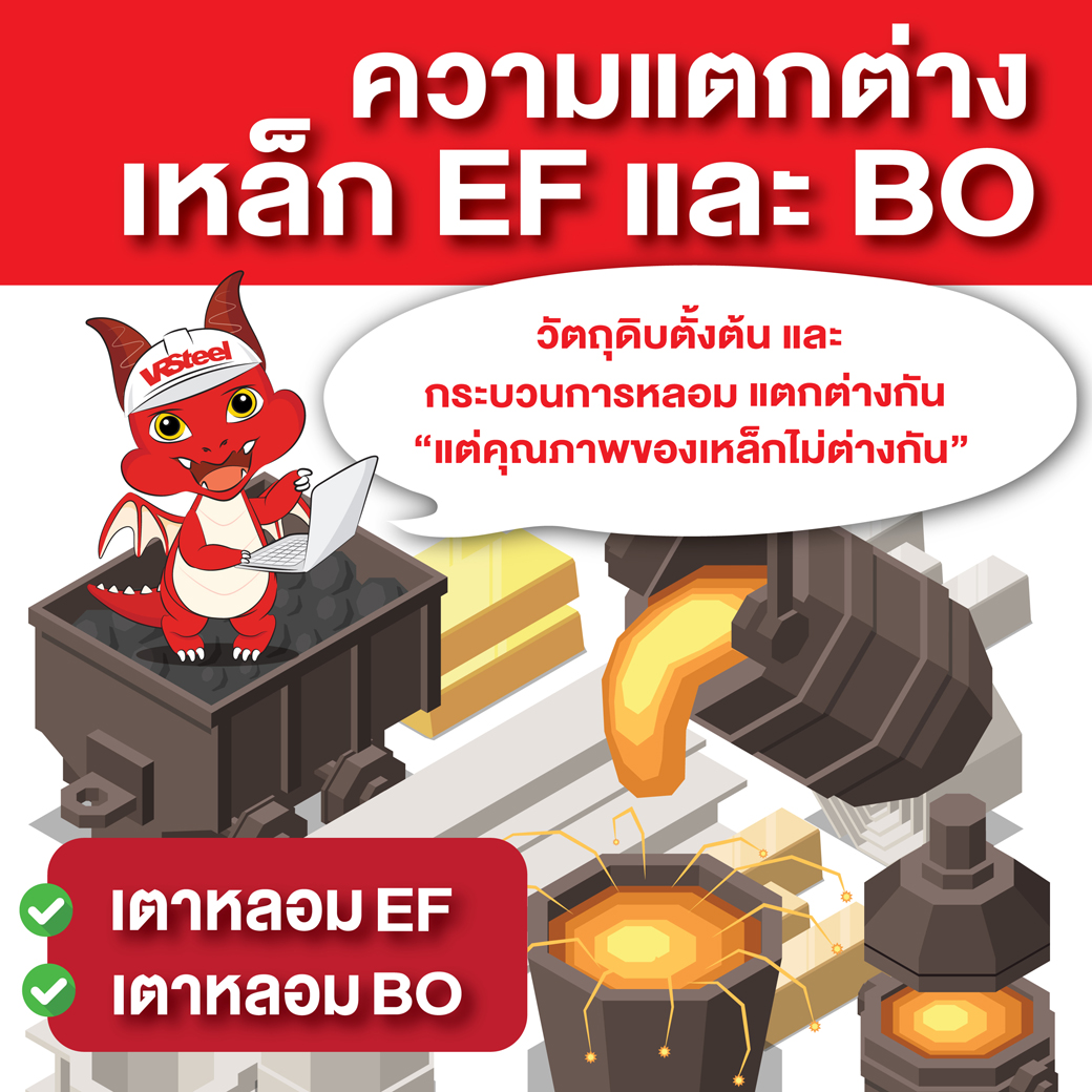 เหล็กเตา EF และ BO ต่างกันที่ “วัตถุดิบและกระบวนการหลอม” เท่านั้น แต่คุณภาพของเหล็กที่ได้ ไม่ต่างกันอย่างมีนัยสำคัญ หากผ่านมาตรฐาน มอก. เหล็กทั้งสองแบบนี้จึงมั่นใจได้ในความแข็งแรง ปลอดภัย และเหมาะสมกับการใช้งานตามประเภทของโครงการก่อสร้าง