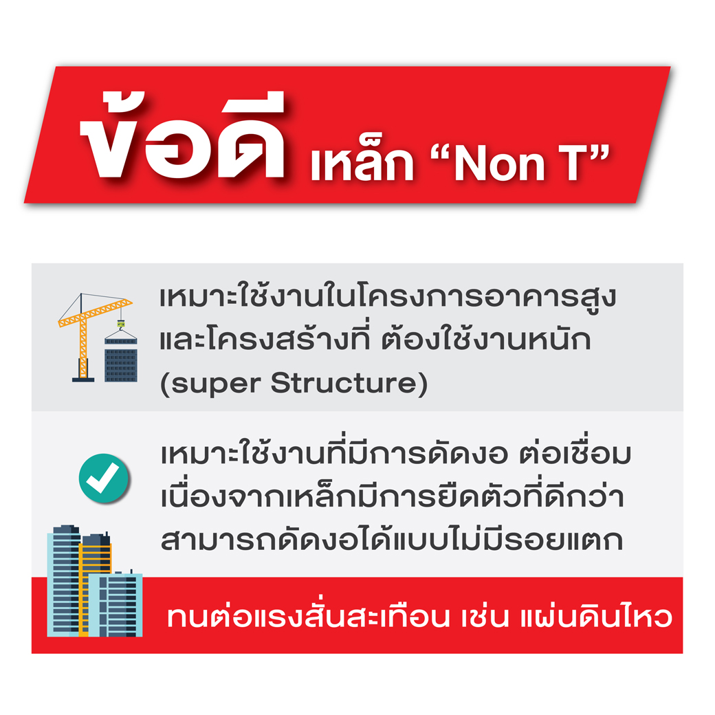 เหล็กเส้น Non-T ที่ผลิตด้วยเตา EF ถือเป็นวัสดุที่ช่วยยกระดับมาตรฐานงานก่อสร้างยุคใหม่ ตอบโจทย์ในด้านของการรักษาคุณภาพ และความปลอดภัยตามมาตรฐาน มอก. ควบคู่กับการควบคุมค่าใช้จ่ายได้อย่างมีประสิทธิภาพ